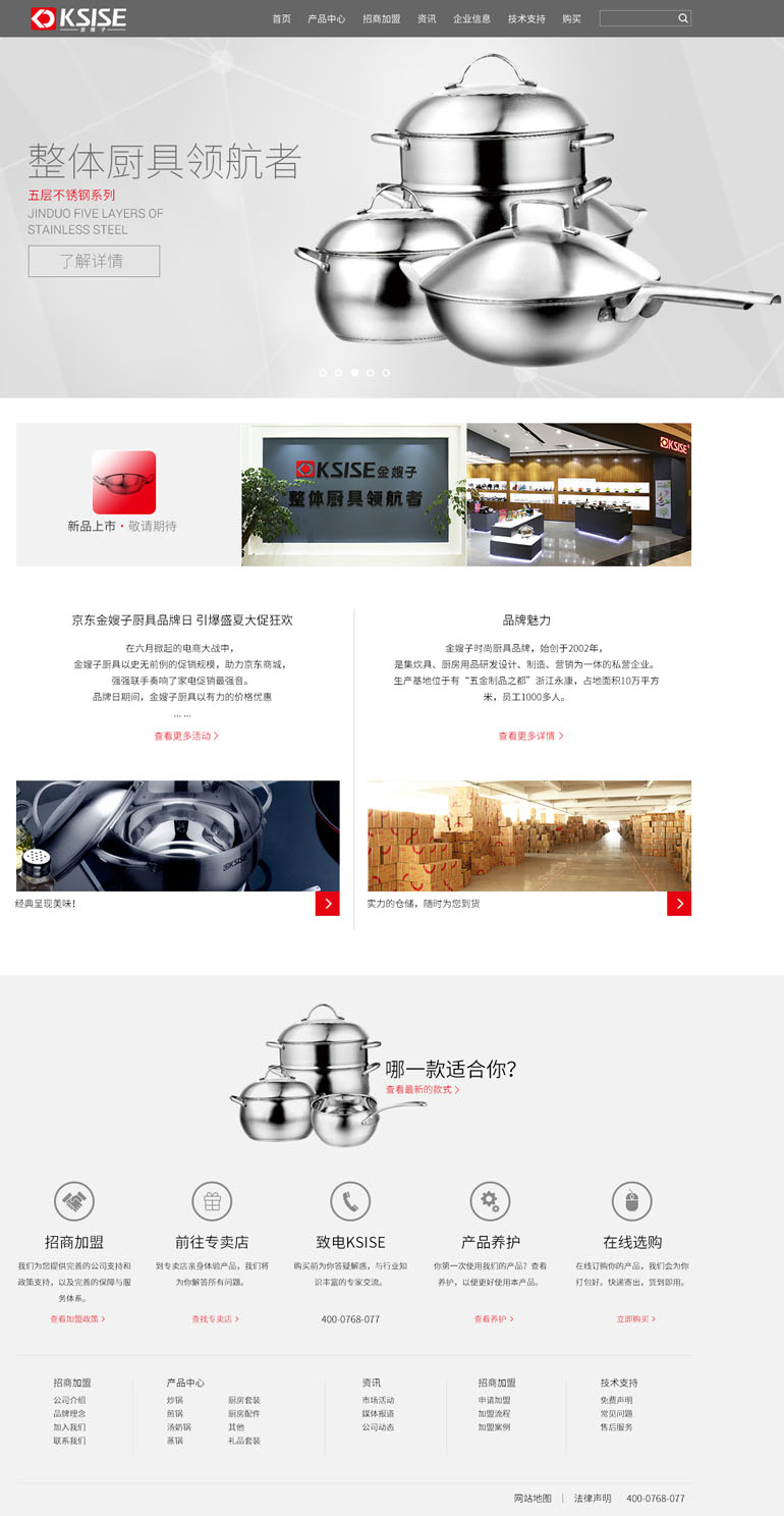 凭借强大的品牌优势、技术研发及创新能力,金嫂子终将成为国内厨具行业品牌的领航者。公司先后建立起香港、广东、浙江、山东等多个基地,初步形成了分布合理、辐射全国销售渠道布局。同时,公司重视开拓国外市场,产品出口欧美、日本、中东、东南亚等国,外销份额逐年扩大,取得了较好的业绩。金嫂子通过中国人民保险承保,技术力量雄厚,严把生产质量关。同时秉承诚信为本的经营方针,拥有众多的长期合作伙伴。
