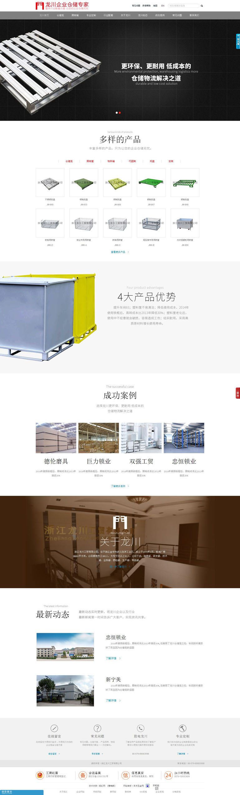 浙江龙川工贸有限公司位于浙江金华市武义白洋工业区,主营各行业物流仓储专用周转箱、仓储笼、托盘及重型货架。在互联网营销趋势的影响下,龙川开始尝试利用网络开拓市场。365bet体育官网在得到了客户的详细资料和进行细致沟通之后,最终确定网站的建设方案。