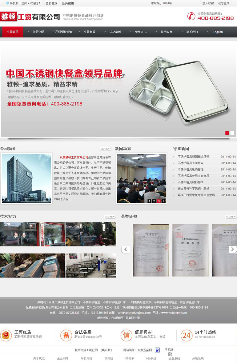 永康雅顿工贸有限公司是苏州江帅贸易有限公司的子公司,它专业设计、生产不锈钢餐具。它成立至今在设计水平、生产工艺、制造数量上都处于飞速发展阶段。雅顿的产品深得国内外客户信赖,公司拥有专业的新产品技术设计队伍并与国内外知名设计师建立起协作关系,密切注视餐具需求变化,每一时期均推出高水平产品,领导时代潮流。公司拥有最先进的制造设备和管理经验,保证了产品的高质量和稳定性;更注重产品的环保控制,以满足欧美国家环保高标准要求。